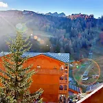 Apartment Near The Slopes La Plagne comprises a balcony and a seating area featuring a sofa, and modern comforts like a television.